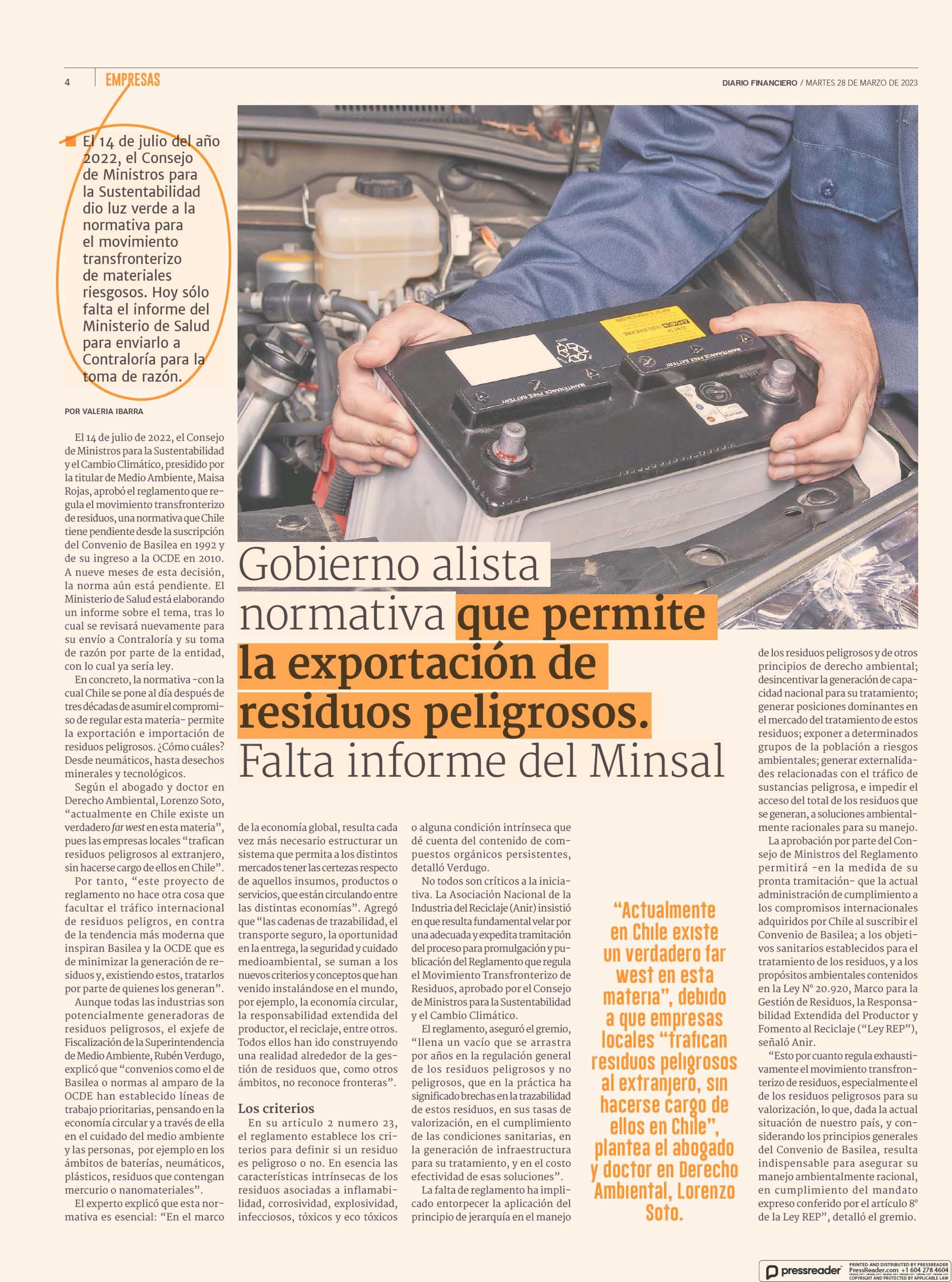 As part of the context, it is important to detail that the regulation is a regulation that Chile has pending since the signing of the Basel Convention in 1992 and its entry into the OECD in 2010, and with its approval the export and import of hazardous waste as tires, mineral, technological waste, among others.